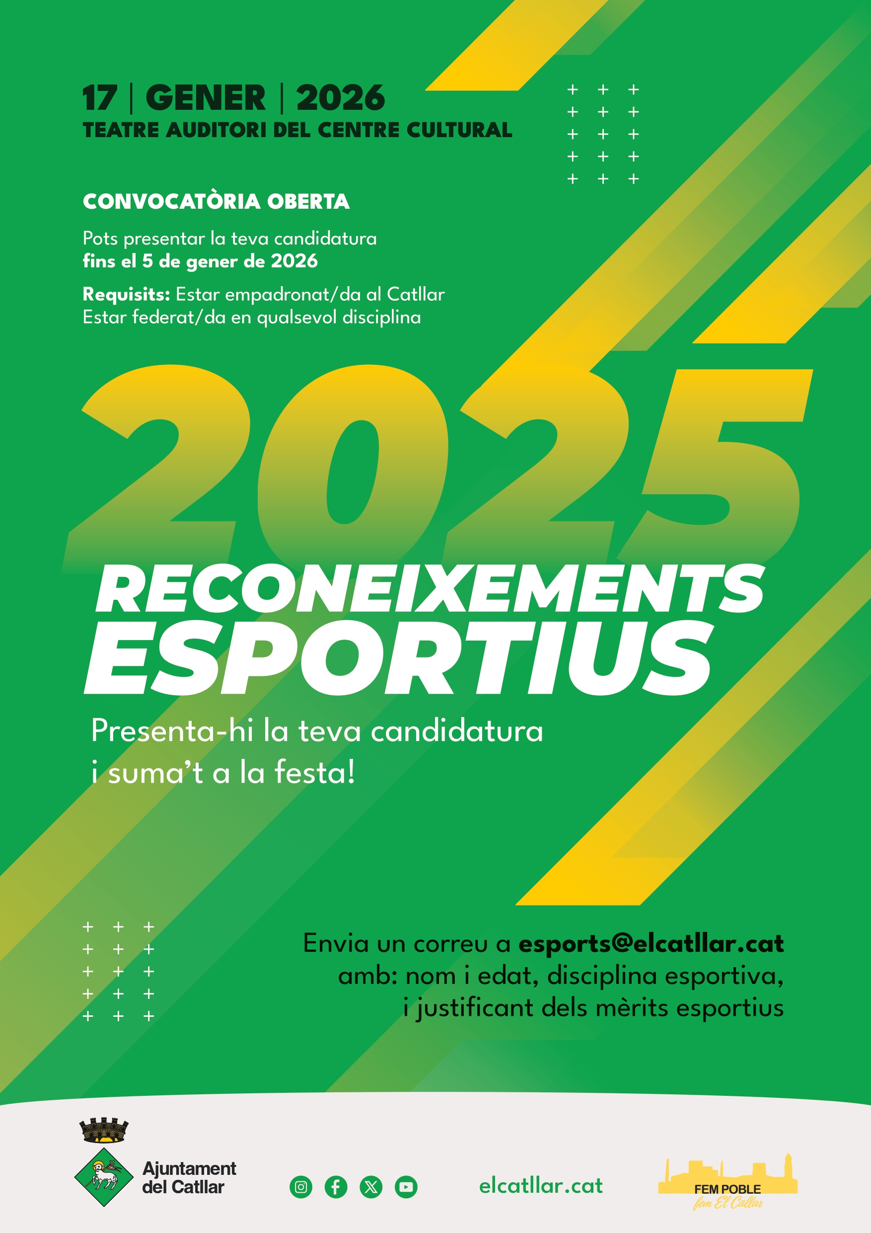 La crida s’adreça a esportistes empadronats al municipi i federats en qualsevol disciplina que hagin assolit una primera, segona o tercera posició en competicions d’àmbit autonòmic, estatal o internacional. El termini per presentar les candidatures finalitza el 5 de gener de 2026 i s’han de tramitar mitjançant correu electrònic a l’adreça esports@elcatllar.cat, adjuntant les dades personals i els mèrits esportius.