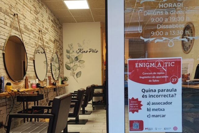 Salou ha posat en marxa aquest dijous, 25 de setembre, la campanya ‘Enigmàtic’, un joc lingüístic que barreja cultura i comerç local amb la voluntat d’apropar el català a tothom d’una manera lúdica. Fins al 14 d’octubre, 32 establiments del municipi exhibiran als seus aparadors enigmes relacionats amb la llengua: frases fetes per endevinar, jeroglífics per resoldre o paraules amagades rere una definició.